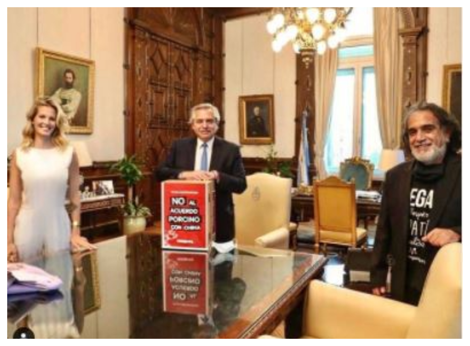 La modelo compartió una foto del encuentro en sus redes sociales.» Alberto Fernández abrió las puertas de la Casa Rosada para recibir a Liz Solari, luego que ella le expresara la gran preocupación de los argentinos ante el avance del acuerdo porcino con China para la instalación de mega factorías porcinas en nuestro país», escribió junto a la imagen de ese día.