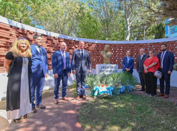 Previo al acto oficial en el Museo Ferroportuario ubicado en kilómetro 3, el gobernador Mariano Arcioni junto a los ministros de su gabinete homenajearon al fundador de la ciudad, Francisco Pietrobelli. En la oportunidad, el Sindicato Petroleros Jerárquicos, el Consulado de Chile, el Concejo Deliberante y la Municipalidad de Comodoro Rivadavia hicieron lo propio y depositaron ofrendas florales al pie del busto del fundador de la ciudad.