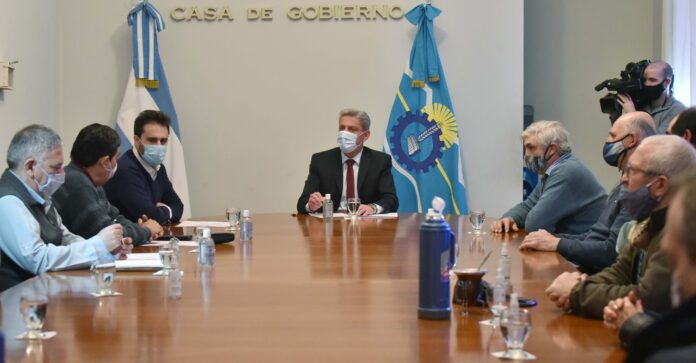 Participaron del encuentro realizado en Sala de Situación de Casa de Gobierno, el ministro de Gobierno y Justicia, José María Grazzini; el presidente de la Compañía de Riego, Esteban Parra; el gerente general, Adrián Contreras; los productores miembros del Directorio, Julio Kresteff, Oscar Schischke, Adrián Vales, Ricardo Evans, Gilberto Hughes, María Palermo, Ariel Hughes, Marcelo Roberts y representantes del Instituto Provincial del Agua (IPA).