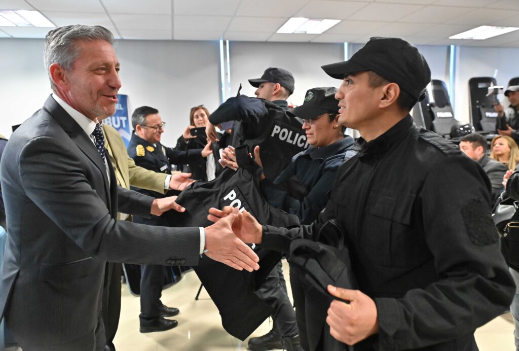 Durante el acto encabezado por el mandatario, fueron entregados 500 chalecos balísticos tácticos RB2; 150 unidades cascos tácticos RBN; y 150 escudos de protección anti tumultos rectos especialmente diseñado para la protección del personal policial en contingencias hostiles que involucren a gran cantidad de personas.