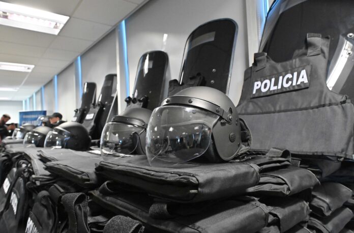 El gobernador del Chubut, Mariano Arcioni, encabezó este miércoles la entrega de equipamiento táctico y de seguridad a efectivos de la Policía del Chubut. Se trata de 500 chalecos balísticos, 150 cascos y 150 escudos de protección anti tumultos adquiridos por el Estado Provincial mediante una inversión de 35.310.000 pesos.