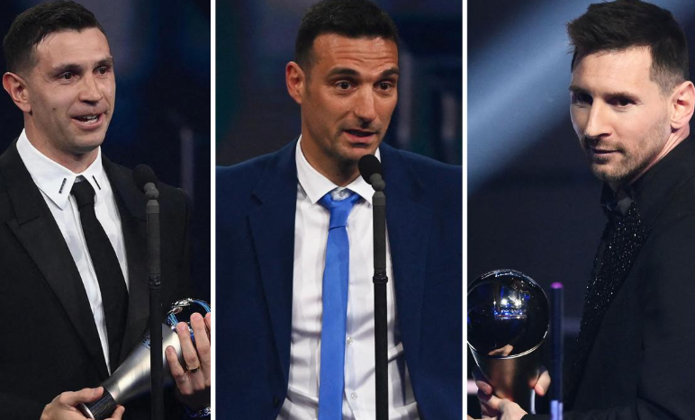 La FIFA galardonó al astro rosarino como mejor futbolista, al «Dibu» Martínez como el arquero más destacado, a Scaloni como el entrenador sobresaliente y a la hinchada «albiceleste» como «mejor afición».