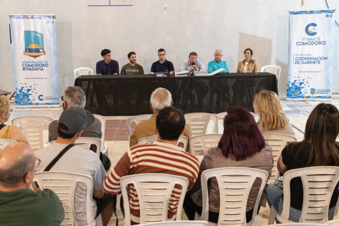 Funcionarios e integrantes del equipo técnico de la Secretaría de Infraestructura y Obras Públicas mantuvieron un encuentro con residentes de dicho sector de la ciudad a fin de informar los alcances de la obra hídrica más importante de la historia de Comodoro Rivadavia, licitada recientemente.