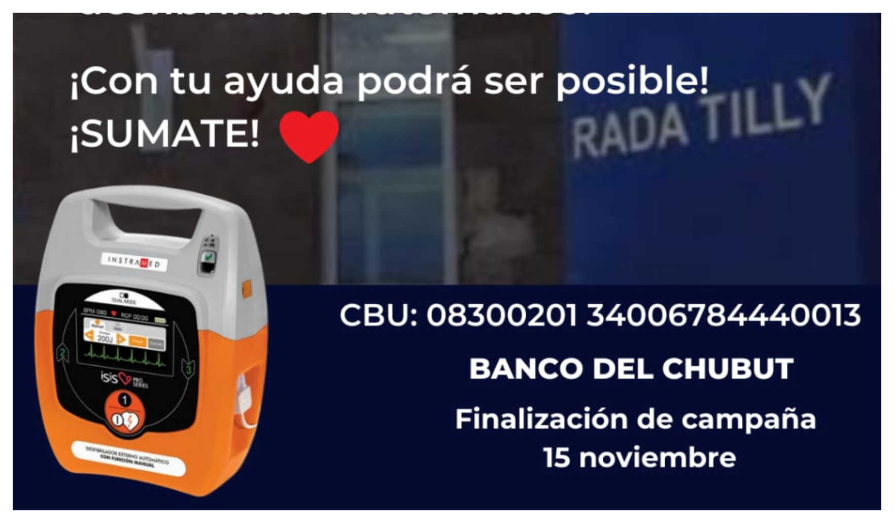 «Sabíamos que el hospital de Rada Tilly estaba pendiente. Nos comunicamos para saber la necesidad mayor» , y de allí surgió que se necesitaba un desfibrilador automático en la lista.