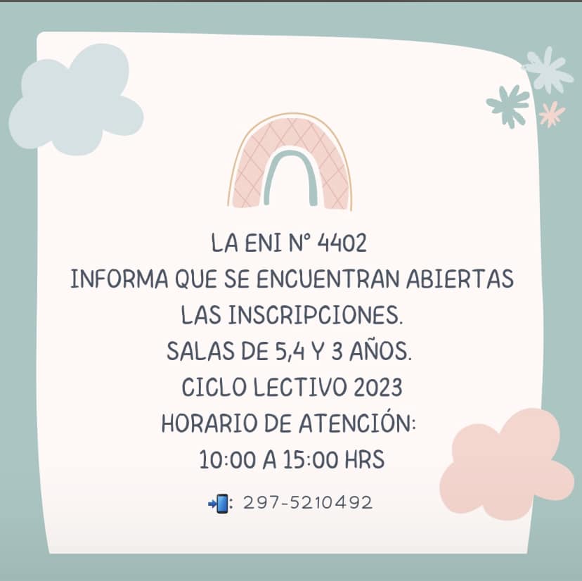Desde la institución educativa informaron que se encuentran abiertas las inscripciones para salas de 3, 4 y 5 años del Ciclo Lectivo 2023.