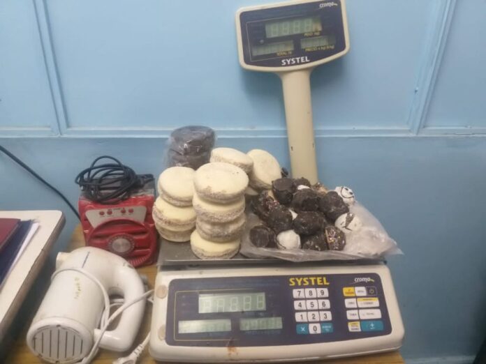 Según informaron fuentes policiales, tras una persecución se pudo detener a un sujeto de 36 años que llevaba un balde de pintura de 30 kg con roscas de Pascua, alfajores de chocolate y de maicena, pastelitos, chocolate varios, una balanza, y un equipo de música.