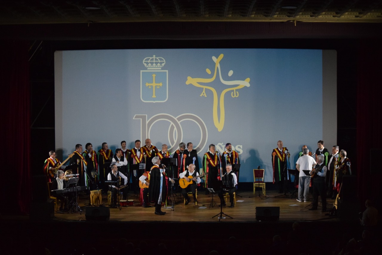 Por la noche, alrededor de las 21 hs. la cita fue en el emblemático Teatro Español, para homenajear los 100 años del Centro Asturiano. La tuna lírica patagónica “Los Abremiles” y el grupo de canto y baile “Covadonga”, junto al gaitero Charly Portillo, desplegaron un show al ritmo de música española ante un escenario vestido y un salón con capacidad completa. La señora embajadora, se mostró asombrada y contenta ante tal despliegue.