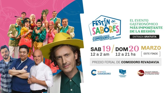 El evento gastronómico que se realizará este fin de semana (sábado 19 y domingo 20 de marzo) en el Predio Ferial de Comodoro Rivadavia, ya anunció su cronograma de actividades. El Festín de Sabores – Comodoro Alma Patagónica es abierto al público y totalmente gratuito. Es organizado por el Ente Comodoro Turismo, junto a la Asociación Empresaria Hotelero Gastronómica de la Patagonia Central, con el asesoramiento del Chef Pablo Soto.