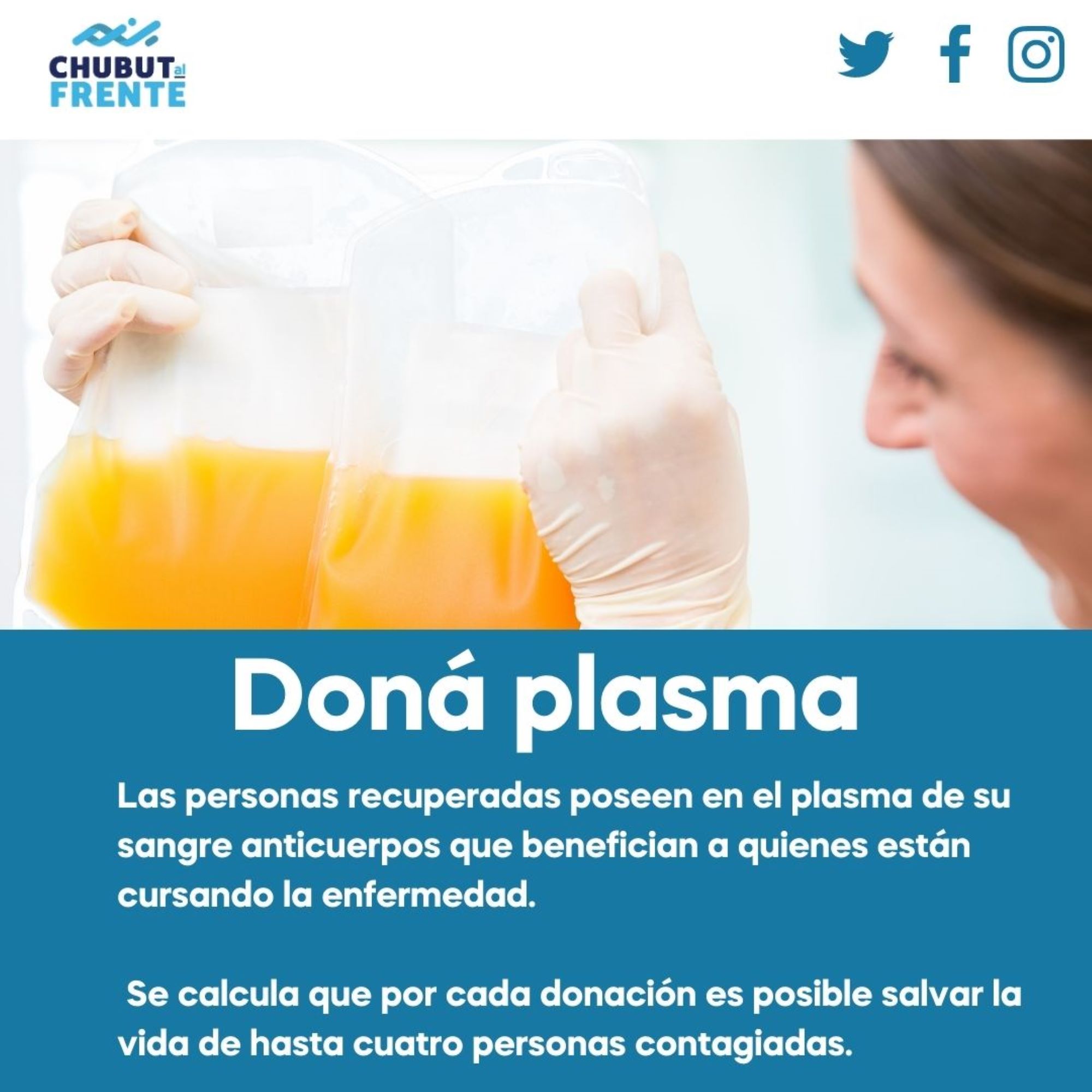 Mabel Morejón y Carlos Barrios Daporta, concejales del Bloque de Chubut al Frente Rada Tilly, presentaron un proyecto de Ordenanza que impulsa la adhesión a la Ley 27.554, la cual promueve la donación voluntaria de sangre para obtener plasma de pacientes recuperados de COVID-19. Las personas recuperadas poseen en el plasma de su sangre anticuerpos que benefician a quienes están cursando la enfermedad; se calcula que por cada donación es posible salvar la vida de hasta cuatro personas contagiadas.