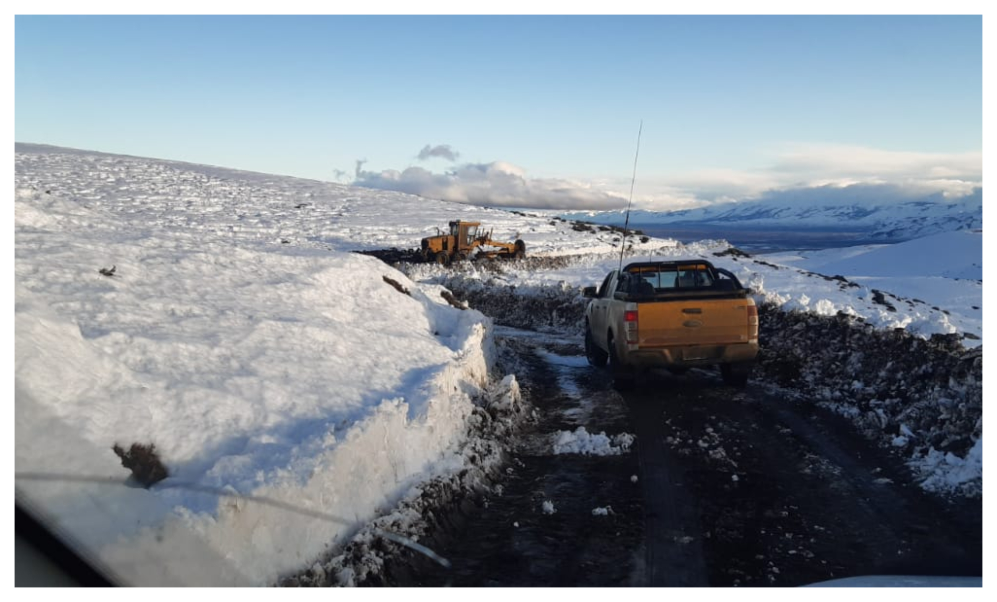 La Administración de Vialidad Provincial (AVP), que preside Cynthia Gelvez, realiza distintas tareas de mantenimiento y apertura de caminos en la zona afectada por el fuerte temporal de nieve que viene registrándose hace unos días.