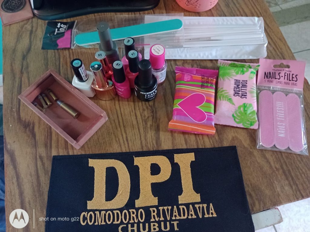 Allí, se procedió al secuestro de 5 esmaltes marca Charm Limit, zapatillas, camperas, pantalones, cartuchos de bala calibre 22, una mochila, dos cascos y una moto sin dominio colocado, la cual fue utilizada para escapar del lugar tras el robo ocurrido en San Martín al 500.