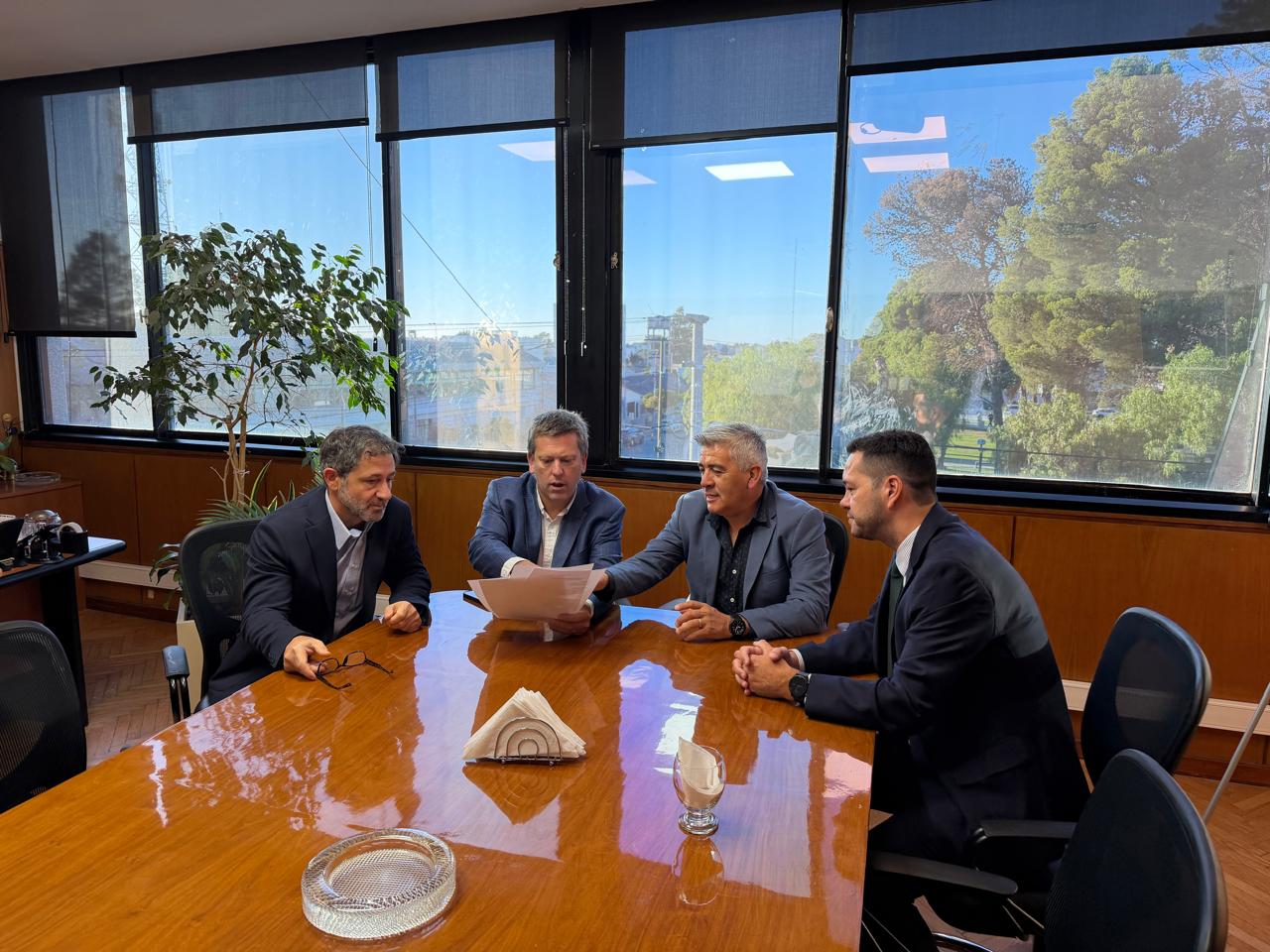 Del encuentro participaron el presidente del Banco del Chubut, Paulino Caballero; los directores Jorge Rubiolo y Emiliano Álvarez Raso; y el intendente de Gobernador Costa, Miguel Gómez.