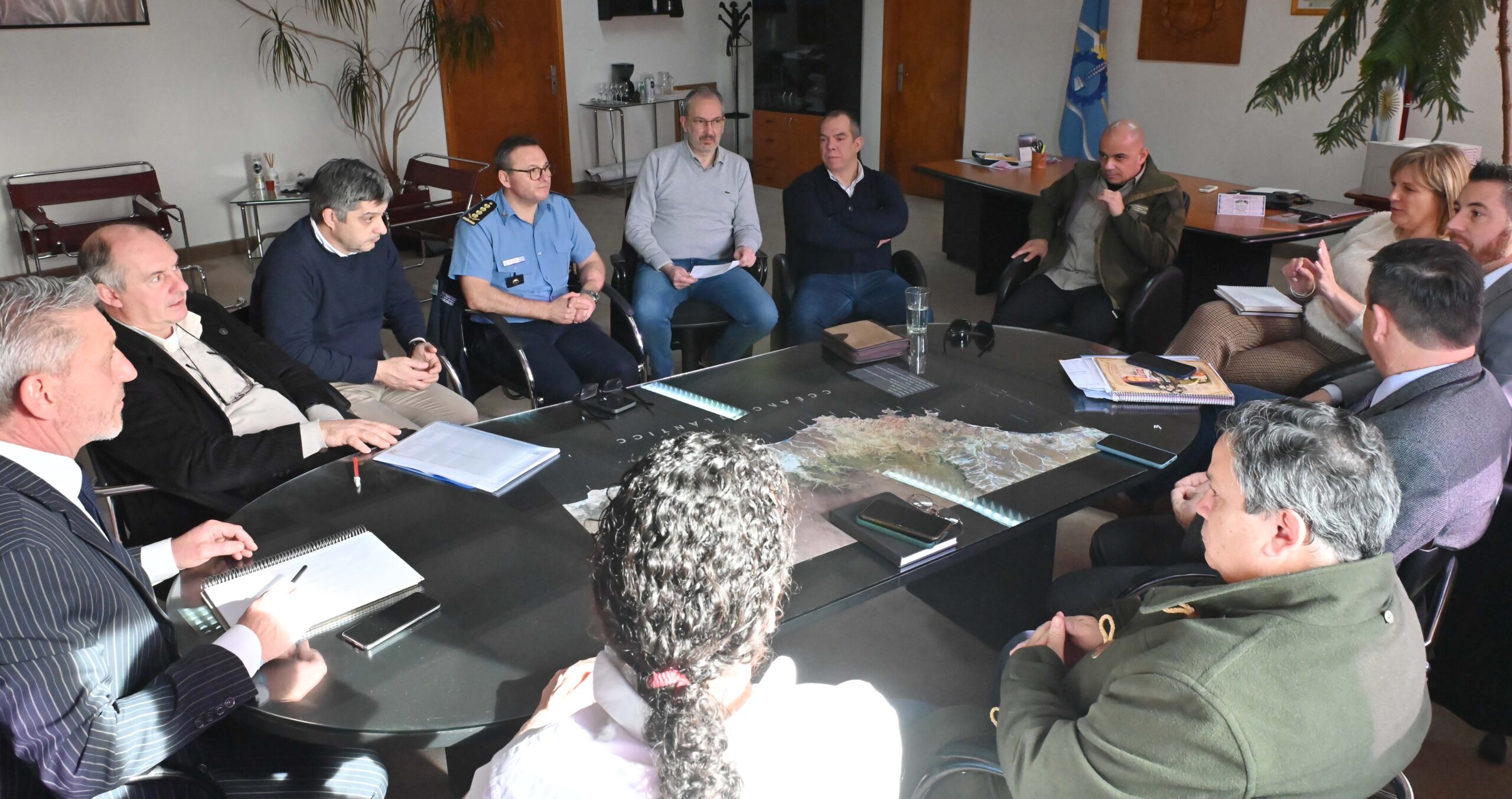 De la reunión, que se desarrolló en el Ministerio de Economía y Crédito Público, participaron los ministros de Educación, José María Grazzini; de Salud, Fabián Puratich; de Infraestructura, Gustavo Aguilera; y de Seguridad, Miguel Castro; los subsecretarios de Protección Civil y Gestión del Riesgo, José Mazzei; de Seguridad, Rubén Becerra; de Servicios Públicos, Sebastián de la Vallina, y de Información Pública, Vanesa Abril; el jefe de la Policía del Chubut, César Brandt y el intendente de Río Pico, Diego Pérez.