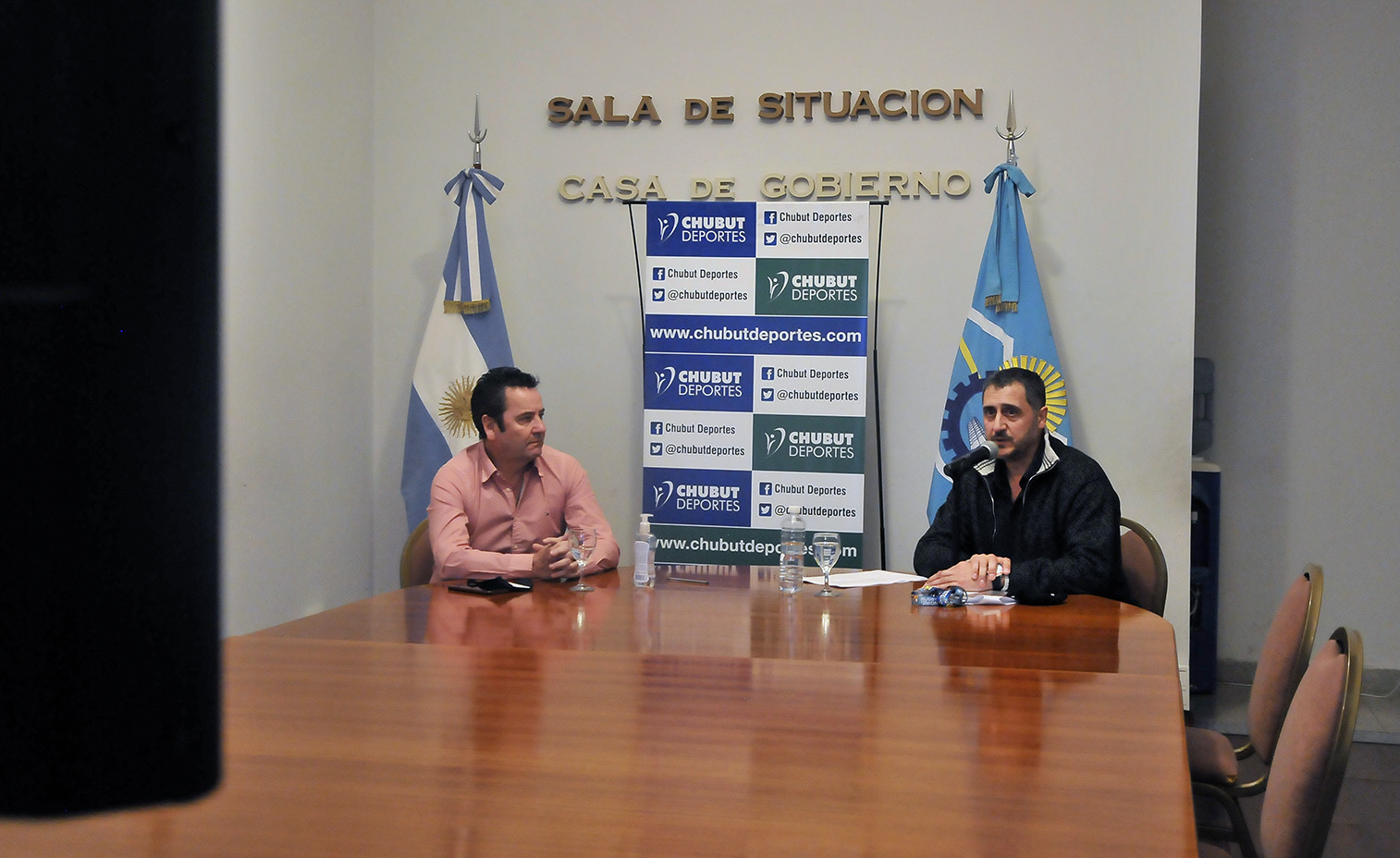 La reunión virtual se realizó en la Sala de Situación de Casa de Gobierno y estuvieron presentes el presidente de Chubut Deportes, Gustavo Hernández; y el asesor de Gobierno, Ariel Molina. Desde Trelew, participaron el intendente Adrián Maderna; y los presidentes de la escuela de fútbol infantil Atlas y del Club Atlético Independiente y del Club de Ajedrez Capablanca.