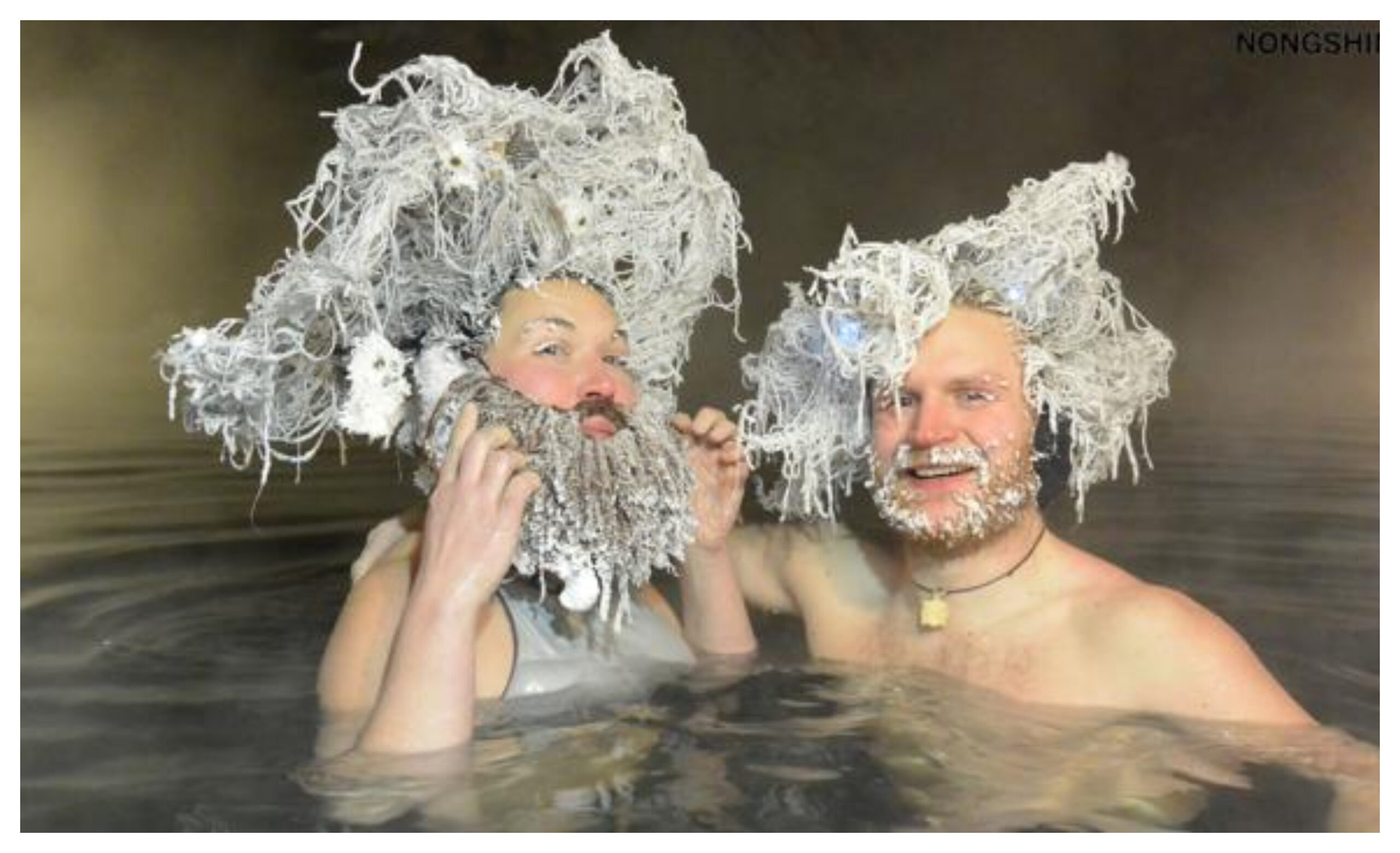 Una vez que se ha perfeccionado este peculiar peinado congelado, los participantes tocan el timbre para que el personal de Takhini Hot Pools inmortalicen el momento en una foto.