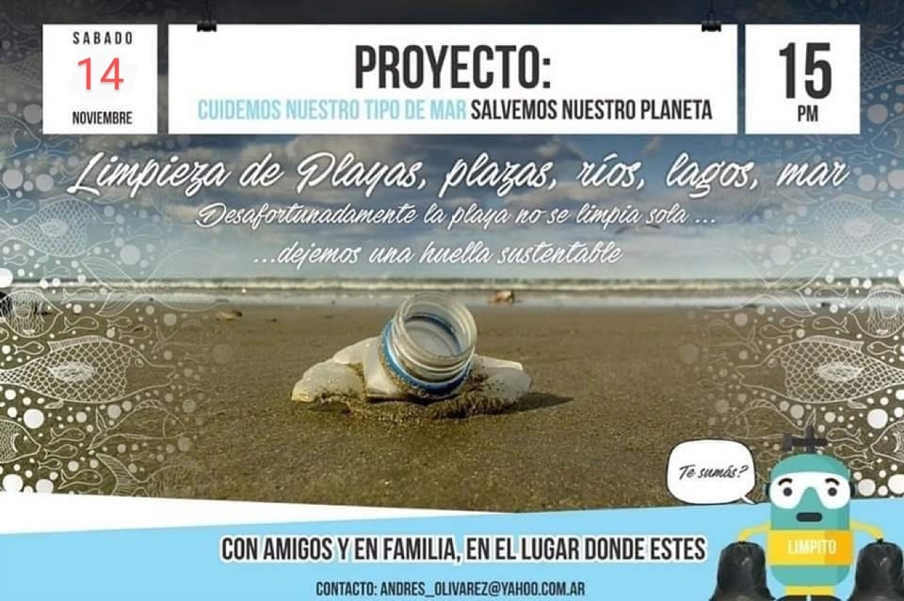 Proyecto: «Cuidemos nuestro tipo de mar, salvemos nuestro planeta». Limpieza de Playas, plazas, ríos, lagos , mar y bajo el lema: «desafortunadamente la playa no se limpia sola, dejemos una huella sustentable».