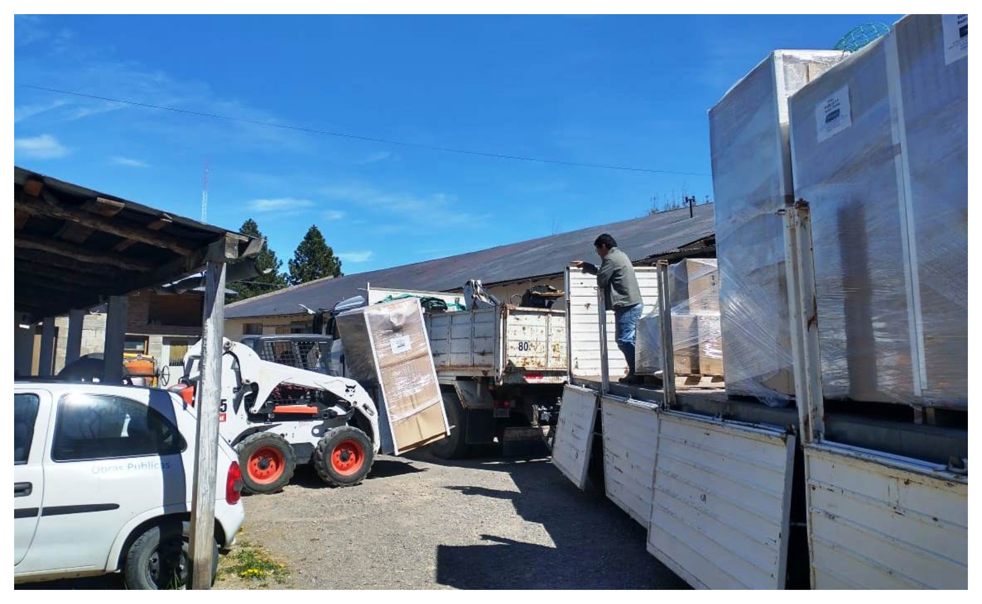 En esta primera entrega la Dirección Regional de Obras Públicas de Esquel recibió cuatro equipos de 30.000 Kcal/h, siete de 50.000 Kcal/h, dos de 80.000 Kcal/h y tres equipos de 100.000 Kcal/h.