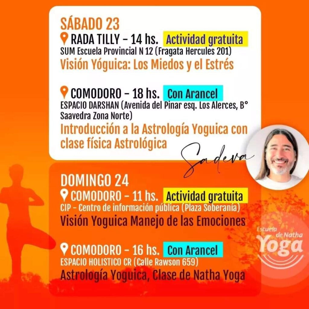 El evento lo dictará el maestro Sadeva con la temática Visión Yoguica, “Los miedos y el estrés” este sábado en el SUM de la escuela provincial N° 12 –Fragata Hércules 201- en Rada Tilly a las 14:00 hs.