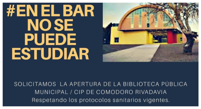 Estudiantes de Institutos Superiores de Comodoro Rivadavia bajo la consigna «#En El Bar No se Puede Estudiar», solicitan a las autoridades la apertura de la Biblioteca Pública Municipal, ubicada en el Centro de Información Pública (CIP).