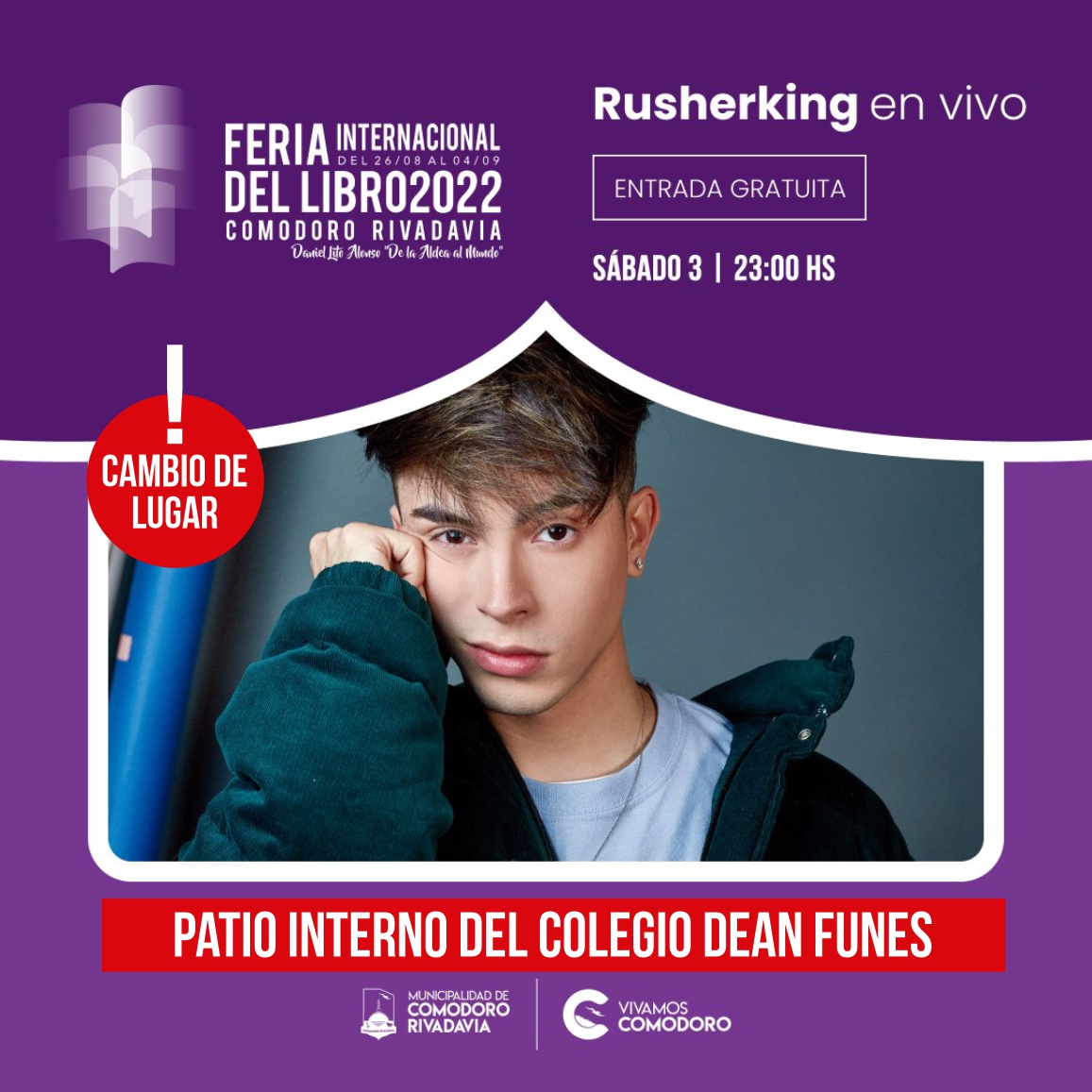 De esta manera, el cambio de escenario aplica el sábado 3 para las presentaciones del cantante urbano Rusherking (23:00); y el domingo 4 el cierre con Valeria Lynch (21:00). Ambos días habrá bandas soportes también designadas en el cronograma oficial.