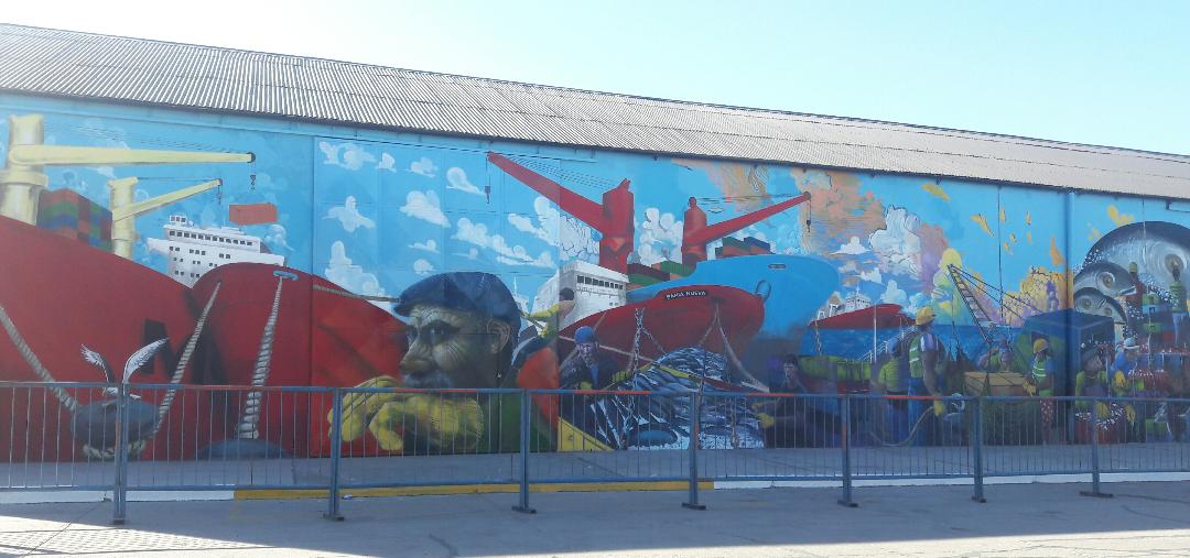 Además, los turistas pudieron apreciar los murales Vida Portuaria y El Regreso, pintados por artistas locales bajo el proyecto “Ciencia al Viento”, dependiente del CONICET CENPAT.
