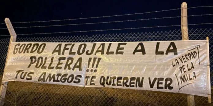 Con un pasacalle atado a un alambrado, los muchachos le compartieron sus inquietudes al “Gordo”. Le pidieron que le afloje a la pollera porque lo querían ver. Con este mensaje el grupo intentó llamarle la atención porque le estaba dedicando demasiado a pasar tiempo con su pareja.