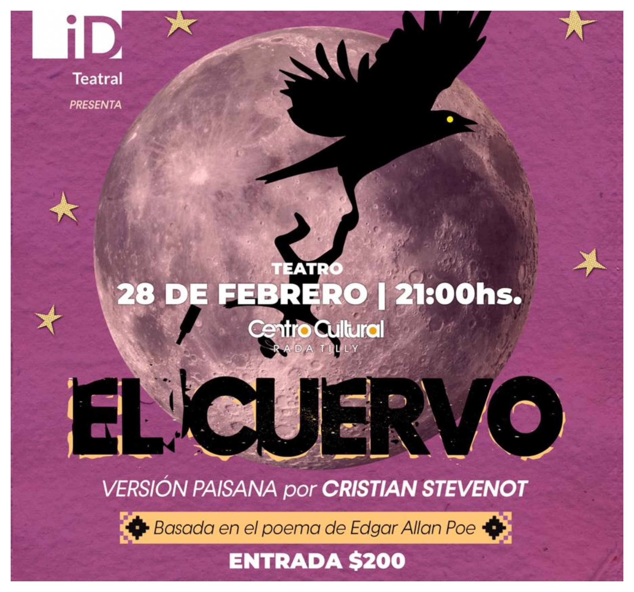 «El Cuervo» versión paisana, es una puesta en escena de la teatralización misma, que dialoga con el presente en la búsqueda del entrecruzamiento de lenguajes. Con la dramaturgia y dirección general de Cristian Stevenot y Asistencia en Dirección de Luna Cortés.