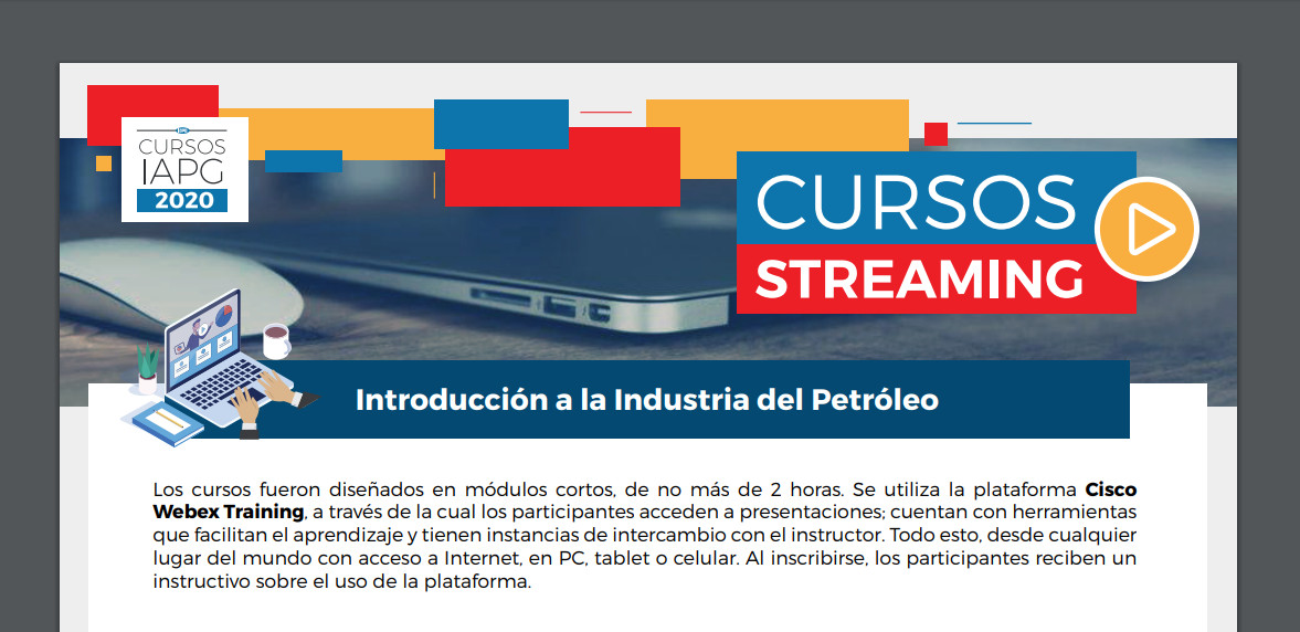 El Instituto Argentino del Petróleo y Gas (IAPG) realizará una serie de cursos vinculados a la energía. La puesta en marcha de capacitación vía streaming pone de manifestó el dinamismo y creatividad del IAPG en su oferta pedagógica para la industria.