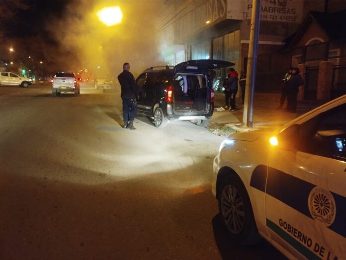 En la mañana de este lunes, el personal del Centro de Monitoreo recibió una llamada de emergencia informando sobre un incendio vehicular en la dirección Kennedy 2066. Al llegar al lugar, la comitiva policial constató que un automóvil de marca Fiat, modelo Qubo, color negro, con la matrícula OQK 878, presentaba un foco ígneo en la zona del motor.