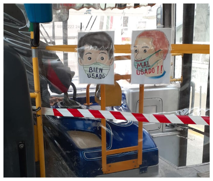 Así quedó demostrado con un chófer que con simpáticos dibujos hechos a mano y pegados en el nylon que lo separa de los pasajeros, explicó el uso debido del tapabocas.