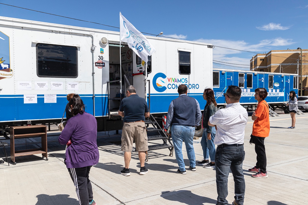 El último fin de semana, se colocó un mega tráiler junto al Ejército, afuera del natatorio municipal del barrio Pueyrredón, donde la Secretaría de Salud prestó el servicio de odontología, clínica médica, pediatría, vacunación, laboratorio, oftalmología y entregaron medicamentos solidarios y lentes del programa Mirándonos.