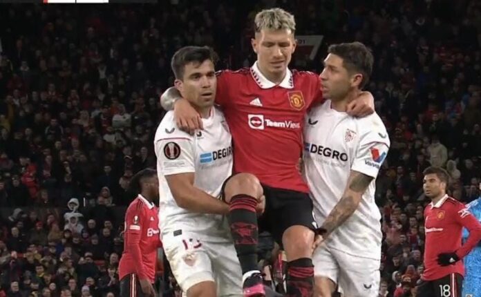Manchester United, que tuvo desde el inicio al defensor argentino campeón del mundo Lisandro Martínez en el campo de juego y se retiró a los 40 minutos de la segunda parte por una lesión en un tobillo, empató este jueves 2 a 2 con Sevilla, en Inglaterra, luego de ir ganando 2 a 0.