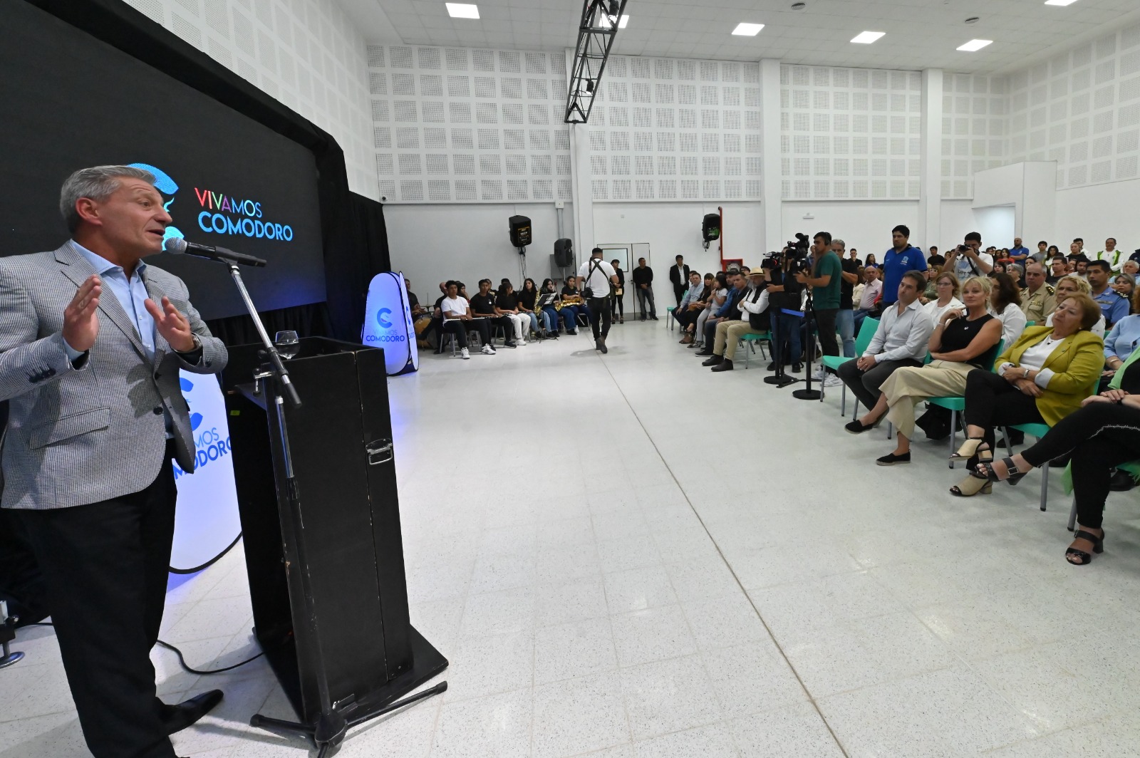 El acto central se desarrolló en el Salón de Usos Múltiples (SUM) y participaron los ministros de Hidrocarburos, Martín Cerdá; de Agricultura, Ganadería, Industria y Comercio, Leandro Cavaco, el titular del Puerto de Comodoro Rivadavia, Favio Cambareri; el delegado de Lotería del Chubut, Leonel Lanzani; los diputados Cristina Casanova, María Magdalena Cativa y Juan Horacio País; la rectora de la Universidad Nacional de la Patagonia, Lidia Blanco; representantes de Instituciones Deportivas, funcionarios municipales, concejales, vecinos, entre otros.