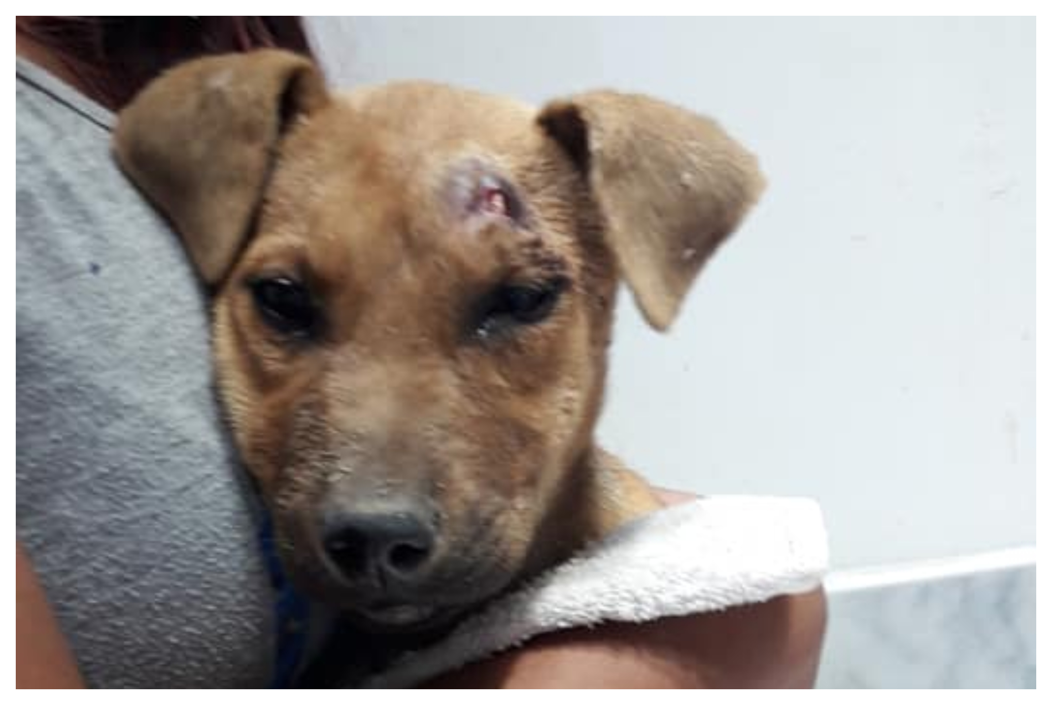 «Ésta vez se trata de una pobre cachorra de tan solo 4 meses de vida. Fue atacada por una bestia inmunda que le fracturó el cráneo con un fierro. Lamentablemente su fractura es expuesta Creímos que simplemente se trataba de pus… pero NO… ERA EL HUESO…!!!», detallaron.