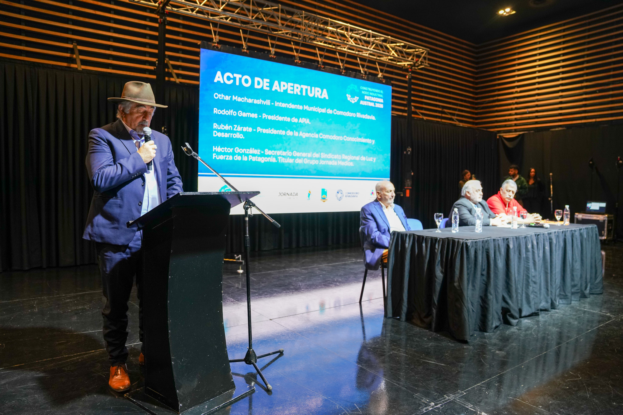De la presentación de las jornadas, encabezada por el intendente Othar Macharashvili; el presidente de Comodoro Conocimiento, Rubén Zárate; el secretario general del Sindicato Regional de Luz y Fuerza de la Patagonia y titular del Grupo Jornada Medios, Héctor González; el presidente de la Asociación de Parques Industriales Argentinos (APIA), Rodolfo Games, participaron el vice intendente, Maximiliano Sampaoli; los intendentes de Rada Tilly, Mariel Peralta; de Sarmiento, Sebastián Balochi, de 28 de julio, Luka Jones; la representante comercial de Rusia en Argentina, Anastasia Chalenko; la cónsul de Chile, Daniela Briones Riveros y el rector de la Universidad Nacional de la Patagonia San Juan Bosco, Gustavo Fleitas.