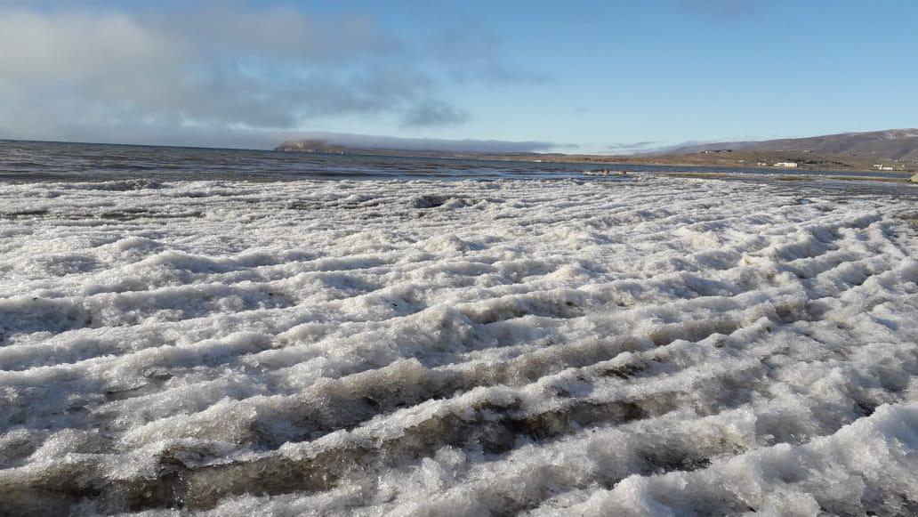 El borde costero del Lago Argentino, que se encuentra ubicado en el sector sudoeste de la provincia de Santa Cruz, se congeló ante las intensas heladas en la zona. Fenómeno que se da esporádicamente, debido a la dinámica del leve oleaje que tiene este espejo de agua, el mayor en superficie dentro de nuestro país.