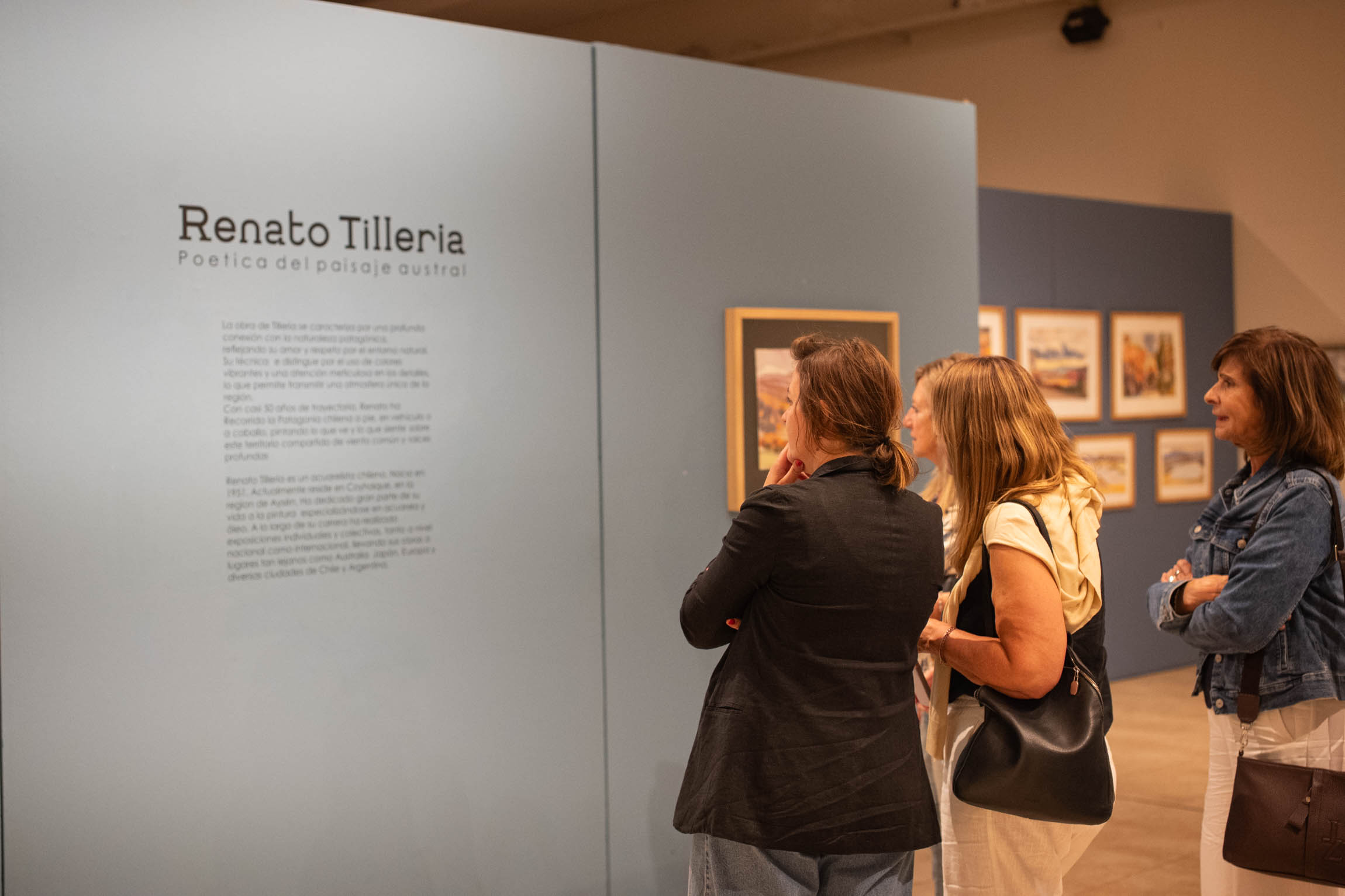 Además, el Centro Cultural alberga la muestra del artista chileno Renato Tellería, acuarelista nacido en 1951 y radicado en Coyhaique, región de Aysén. Tellería ha desarrollado una extensa trayectoria con exposiciones en Chile, Argentina y otros países, y su obra se caracteriza por una profunda conexión con la naturaleza patagónica, destacándose por el uso de colores vibrantes y el cuidado en los detalles.