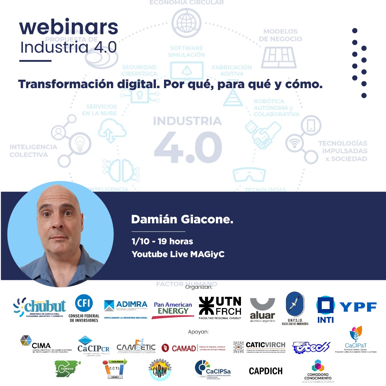 En esta oportunidad, el Licenciado en Sistemas e Ingeniero de software, Damián Giacone presentará “Transformación Digital. Por qué, para qué y cómo”.