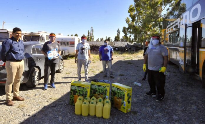 El secretario de Trabajo, Cristian Ayala explicó que “vamos a realizar la desinfección de cada unidad de transporte de larga distancia para preservar la sanidad en la provincia. Entregamos equipamiento a la cooperativa ‘Tiempos de Victoria’ como lavandina, desinfectante y mochilas rociadoras”. “Los trabajadores cuentan con todas las medidas de protección, máscaras que fueron cedidas por Ciencia y Tecnología del Chubut, a través de voluntarios que las construyeron con impresoras 3D y debajo de estas llevan barbijo, además de mamelucos descartables”, agregó el funcionario provincial.