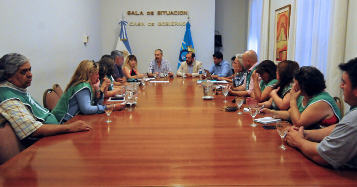 Durante el encuentro, estuvieron presentes los ministros de Gobierno y Justicia, José María Grazzini; y de Salud, Fabián Puratich; el secretario de Trabajo, Cristian Ayala; el secretario general de ATE, Guillermo Quiroga, el secretario gremial, Luciano Bunge, y el secretario de la Seccional Puerto Madryn, Roberto Cabeda; entre otros secretarios y adjuntos de las distintas seccionales gremiales.