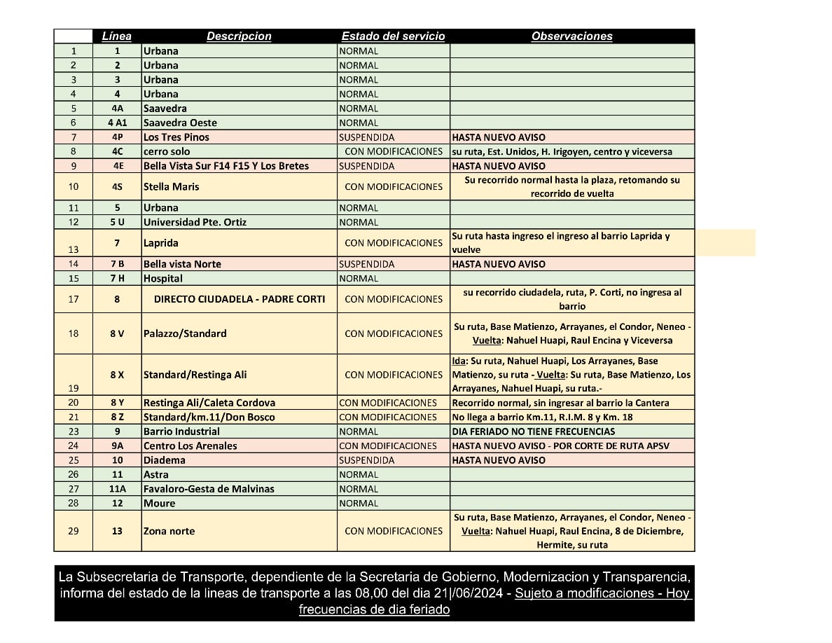 Comodoro Restablecieron el servicio de transporte público Por redaccion - 21 de junio de 2024 0 307 FacebookXPinterestWhatsApp Publicidad El mismo se encuentra en funcionamiento desde las 06:30 horas. Igualmente, la Subsecretaria de Transporte dio a conocer el estado de las líneas del transporte. Igualmente, indicó que las frecuencias serán de día feriado. Publicidad