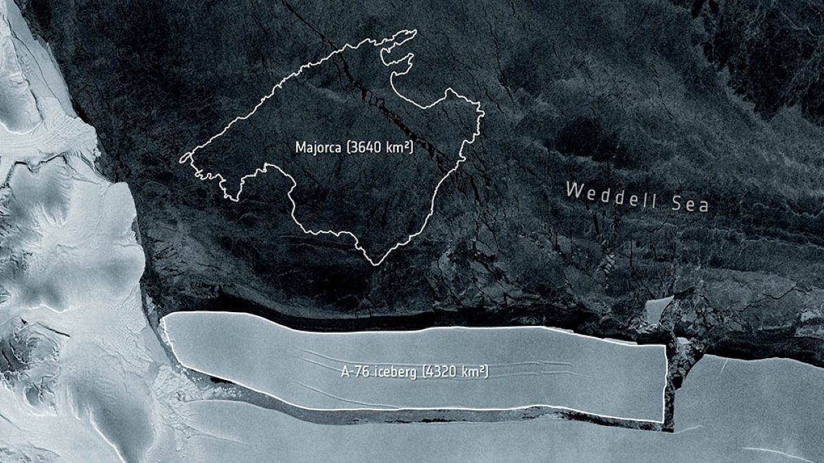Las imágenes del inmenso bloque de hielo A-76 fueron tomadas por el satélite Sentinel-1, que pertenece al programa europeo de observación de la Tierra Copernicus.