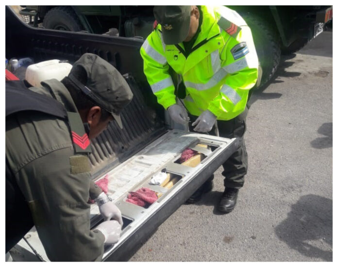 Personal de Gendarmería Nacional secuestró más de 48 kilos de marihuana y 5 kilos de cocaína en los laterales y la compuerta trasera de una camioneta que circulaba desde Buenos Aires a Chubut.