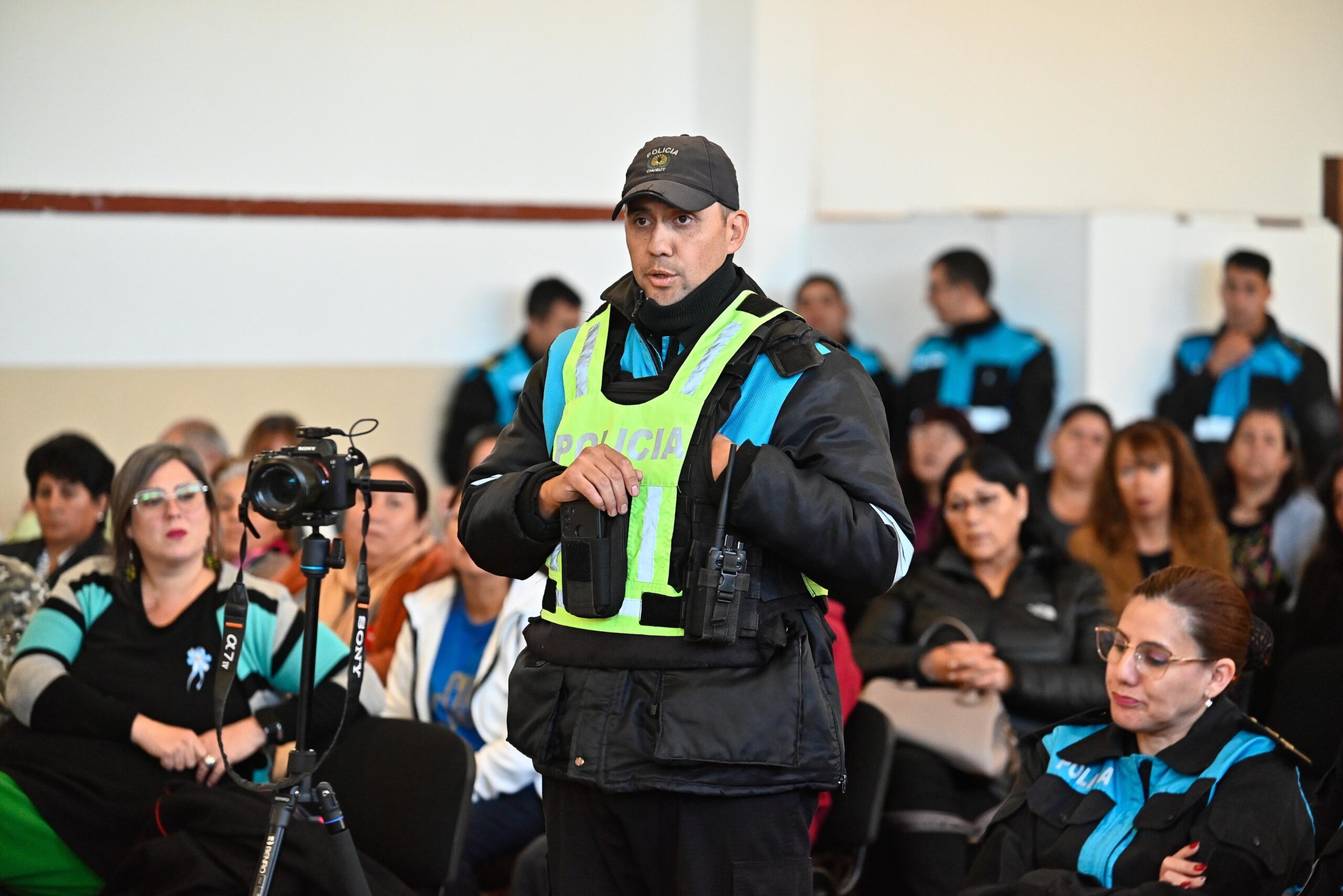 Ante un auditorio repleto, compuesto en su gran mayoría por agentes sanitarios, personal docente y no docente y policías, el titular del Ejecutivo explicó los alcances del plan provincial para la construcción de 450 viviendas y anticipó la iniciativa que se llevará adelante conjuntamente con el Banco del Chubut para la refinanciación de pasivos.