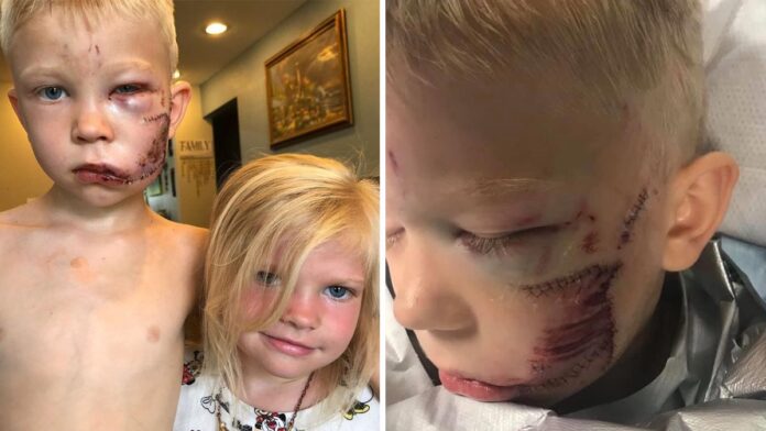 “Mi sobrino Bridger, de seis años, salvó la vida de su hermanita poniéndose entre ella y un perro que atacaba. Después de ser mordido varias veces en la cara y la cabeza, tomó la mano de su hermana y corrió con ella para mantenerla a salvo”, narró Nicole Walker en Instagram, junto a fotos de los dos pequeños en la ciudad de Cheyenne, en Wyoming (EEUU).