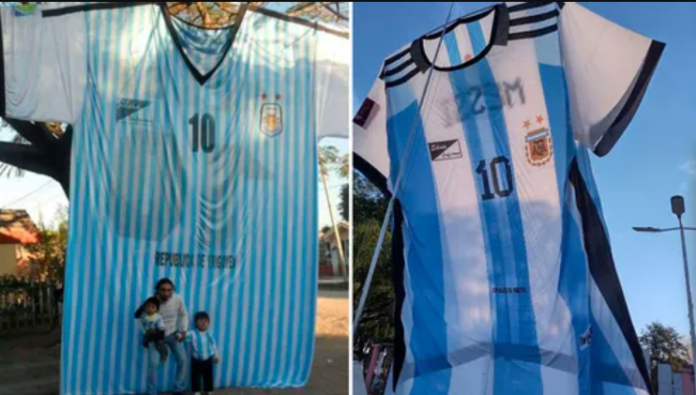 Como no podía ser de otra manera, la camiseta de la Selección argentina más grande del mundo fue hecha en nuestro país. Más precisamente en Hipólito Yrigoyen, un pequeño pueblo de Salta.
