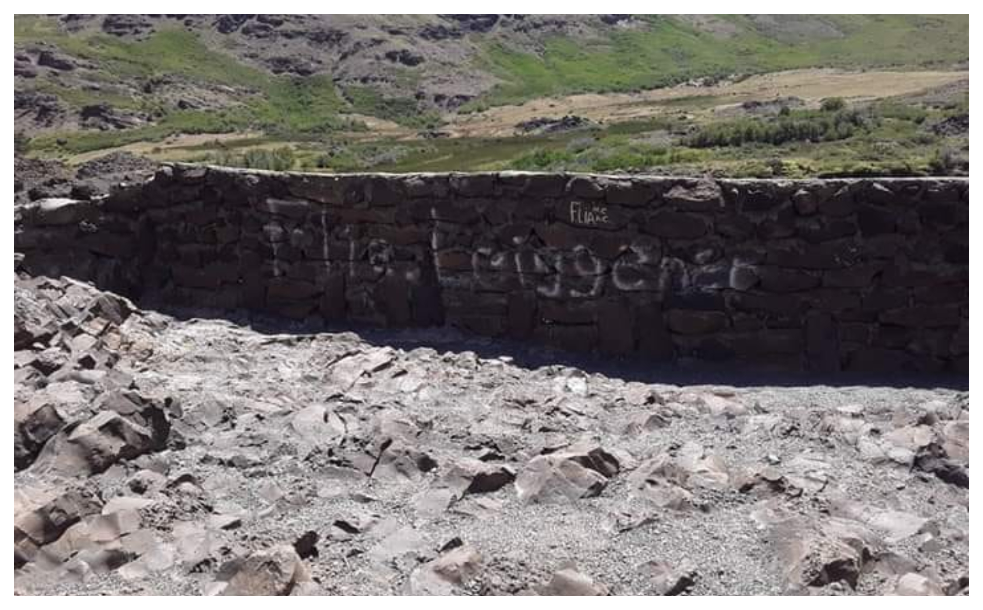 «Familia de «estultos artistas», que pretenden «transcender» pintando con aerosol su apellido en el Salto del Agrio. No permitamos estas cosas. Escrache masivo, que vengan a borrarlo», posteo Verónica Nicky García, una vecina que se encontró con las pintadas en el área protegida en el Salto del Agrio en la provincia de Neuquén.