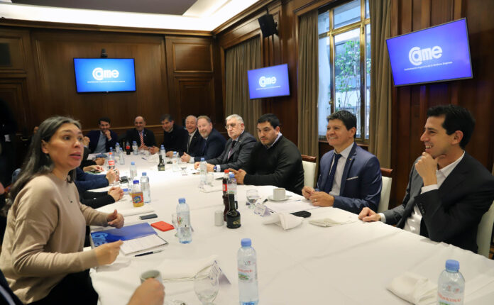 Dirigentes de la Confederación Argentina de la Mediana Empresa (CAME) mantuvieron hoy un encuentro con el ministro de Interior de la Nación, Eduardo «Wado» de Pedro, la embajadora de Chile, Bárbara Figueroa, y representantes empresarios y de gobierno de diferentes provincias del país. «Debemos hablar de integración y de regiones. La Cordillera que nos une debe estar conectada de forma aérea y terrestre a fin de generar una completa integración», destacó el titular de la entidad, Alfredo González.